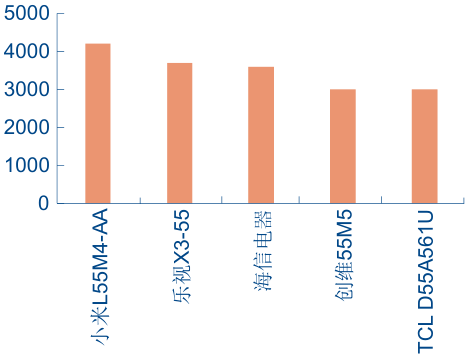 不同品牌 55 寸線上主銷型號均價對比(單位:億元)