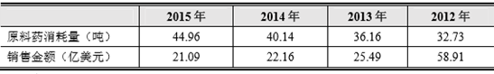 2012 年-2015 年期間,孟魯司特鈉原料藥全球消耗量和全球銷售金額情況 如下: