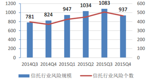 信托業(yè)風(fēng)險(xiǎn)項(xiàng)目規(guī)模與個(gè)數(shù)(億,個(gè))