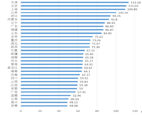 2015 年全國勞動生產率指數為 67.86,各省市勞動生產率指 數情況如下圖所示。