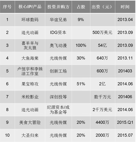 2013-2015-年動畫電影內容相關企業重大投資并購案例