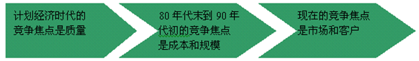 3. 隨著市場的逐漸飽和,以及行業生產能力的不斷增加,90年代末到現在,許多企業陷入產品庫存急劇上升、資金周轉不靈的困境之中。大企業集團在質量、成本、生產規模等方面的相對優勢正在逐漸減弱,家電行業面臨以市場和客戶為核心的新的一輪競爭。