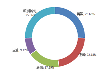 就歐洲空氣凈化器消費格局而言,主要分布在重工業(yè)比較發(fā)達的國家。英國占到消費總量的27.3%;其次是德國,占比約為23.6%;法國消費占比為18.5%。