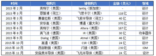 2015年全球IC行業重大并購情況