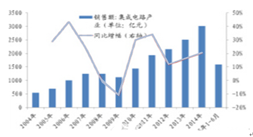 2004-2015年中國集成電路銷售額趨勢
