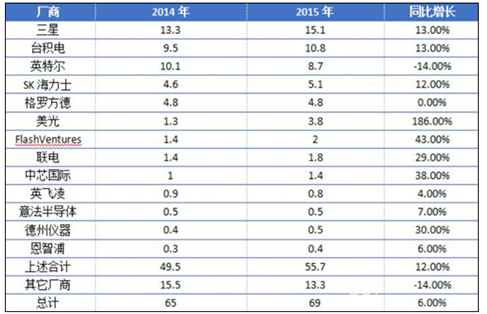 2014-2015年全球主要IC廠商資本支出情況