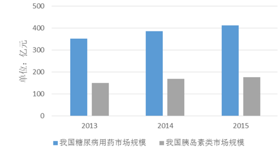 我國(guó)糖尿病用藥和胰島素類市場(chǎng)規(guī)模圖