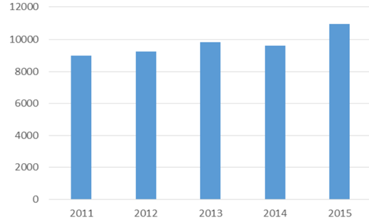 2011-2015 年我國(guó)糖尿病患者人數(shù)圖(單位:萬(wàn)人)