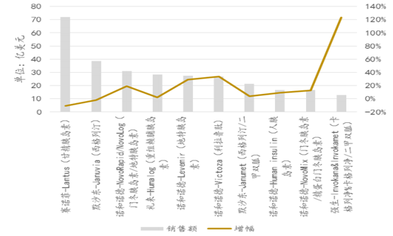樣本醫(yī)院各大糖尿病藥物銷售額及增長(zhǎng)速度圖