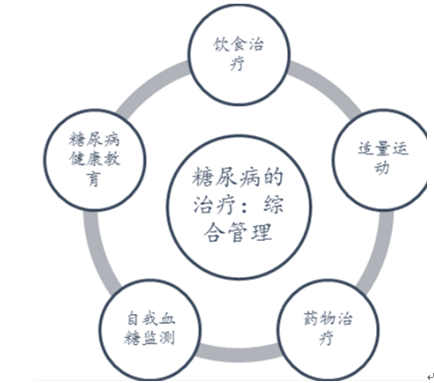 糖尿病的治療是一個(gè)綜合管理的過(guò)程,需要飲食、運(yùn)動(dòng)、藥物、血 糖監(jiān)測(cè)和健康教育“五架馬車”并駕齊驅(qū)。如不及時(shí)治療,血糖波動(dòng)會(huì) 造成機(jī)體器官的損害,加速并發(fā)癥的發(fā)生。糖尿病是一個(gè)終身疾病,目 前醫(yī)學(xué)水平無(wú)法根除治愈,需要終身治療,通過(guò)使用降糖藥控制血糖, 延緩并發(fā)癥的發(fā)生。