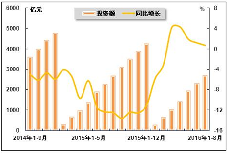 表1 2015年8月-2016年8月鋼鐵行業(yè)固定資產(chǎn)投資變化情況