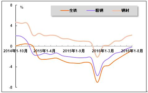 表2 2015年8月-2016年8月鋼鐵行業(yè)增加值增長率情況