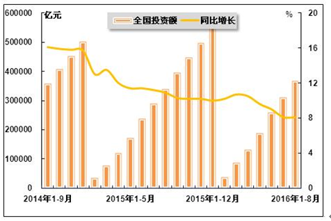 2016年8月,全國固定資產(chǎn)投資增速自4月份以來首次止跌,鋼鐵行業(yè)整體需求壓力依然較大。國家統(tǒng)計局?jǐn)?shù)據(jù)顯示,2016年1-8月,全國固定資產(chǎn)投資(不含農(nóng)戶)累計完成366,339.0億元,同比增長8.1%,增速與2016年1-7月持平,比上年同期下降2.8個百分點。