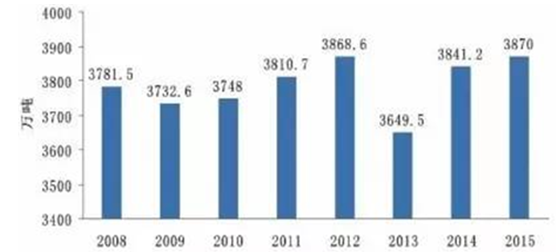 2008-2015年中國(guó)奶類產(chǎn)量