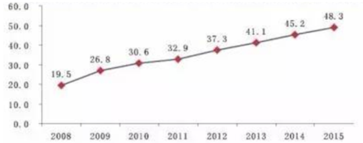 2008-2015年中國(guó)奶牛規(guī)模養(yǎng)殖比重變化