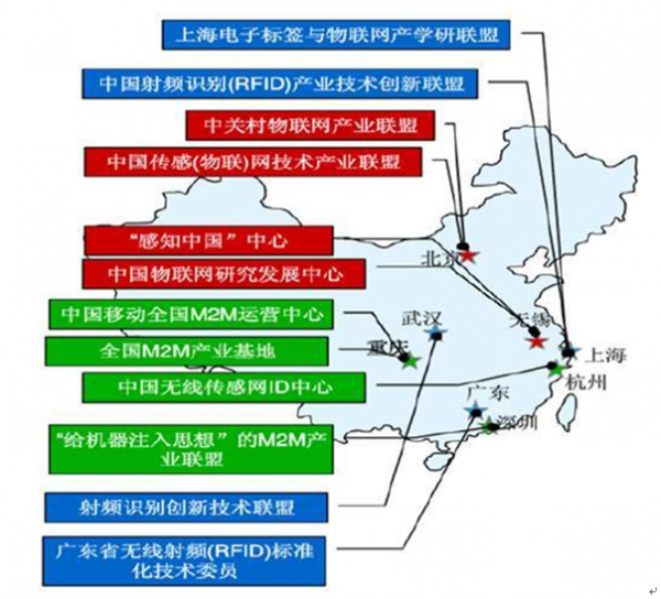 從空間分布來看,我國圍繞北京、上海、無錫、杭州、廣東、深圳、武漢、重慶八大城市建立產業聯盟和研發中心,已初步形成環渤海、長三角、珠三角、中西部四大區域產業集聚區。各區域產業集聚各有特色,物聯網應用發展各有側重,產業領域和公共服務保持協調發展。