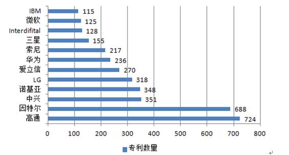 各巨頭意圖搶占物聯網發展先機,首要的是建立技術優勢,進而擁有建立標準的話語權,物聯網專利數量因此成為各方實力比拼中的重要因素。芯片巨頭高通和英特爾排名前兩位,中興排名第三,華為亦榜上有名。