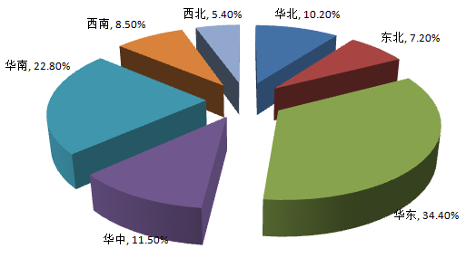 目前,我國光纖陶瓷插芯行業銷售主要集中在我國通訊產業、3G、4G生產集中區域,銷售區域分布如下圖所示: