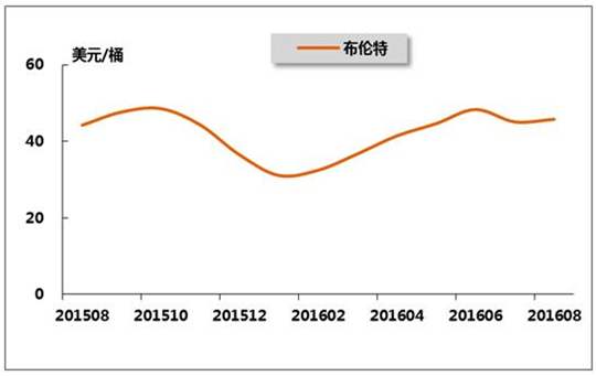 圖10 2015年8月-2016年8月布倫特原油月平均價(jià)格走勢(shì)