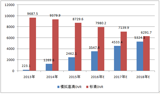 核心提示:根據(jù) IHS 研究報(bào)告, 2013 年-2018 年,中國(guó) DVR 制造市場(chǎng)情況如下圖所示:2013-2018年中國(guó)模擬高清DVR及標(biāo)清DVR 市場(chǎng)總量及預(yù)測(cè) (單位:千臺(tái)) 從上圖可見, 2013 年-2018 年, DVR 產(chǎn)品仍將根據(jù) IHS 研究報(bào)告, 2013 年-2018 年,中國(guó) DVR 制造市場(chǎng)情況如下圖所示: