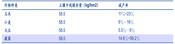 傳統農用地膜殘留:傳統地膜多為 PE(聚乙烯)制成,自然條件下很難降解,在土壤中可以殘存長達100-200年。耕地土壤中的殘膜量不斷增加會使土壤環境惡化,土壤含水量下降,板結且肥力下降。據調查,目前中國地膜殘留量一般在 60-90kg/hm2,最高達165kg/hm2。