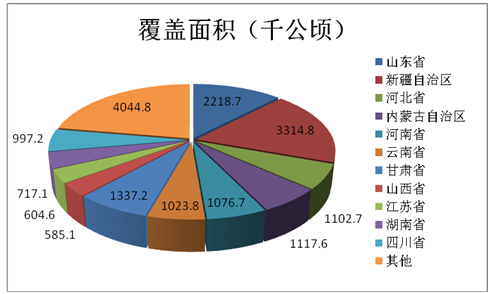 近三十年來,我國地膜覆蓋面積和使用量一直位居世界第一。據數據,截止 2014 年,新疆的地膜覆蓋面積已達3314.8 千公頃,總農用地膜使用量達 22.98 萬噸,已成為我國地膜覆蓋面積最大、用量最多的省區,是農用地膜的重點市場。