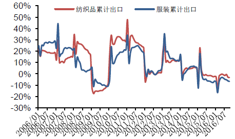2016年10月產量增速保持個位數震蕩,紡織業固定資產投資增速略有回落。16年10月紗線產量增速與上月持平(4.5%),仍保持個位數震蕩,5-8月均有小幅下降。16年10月紡織業固定資產投資增速為10.5%,較9月有所下滑;截至16年9月底紡織業和服裝業成品庫存同比增速繼續低位震蕩(均為個位數)。