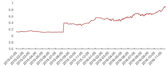 自2015年8月人民幣兌美元短時間大幅貶值之后,人民幣匯率進入了一個持續的趨勢性貶值區間,今年以來人民幣對美元已貶值6.23%。展望明年,即將接任的新美國總統特朗普的國內財政刺激政策和海外收縮政策使得美元走強預期概率增大,而中國國內信貸增量與貨幣政策的走向也存在使貶值趨勢持續的可能。如果貶值持續,板塊內出口型企業將明顯受益:一方面出口產品的國際競爭力將會加強,另一方面企業可能取得匯兌收益,此外原材料進口、海外產能布局、套保等也會受到匯率影響。