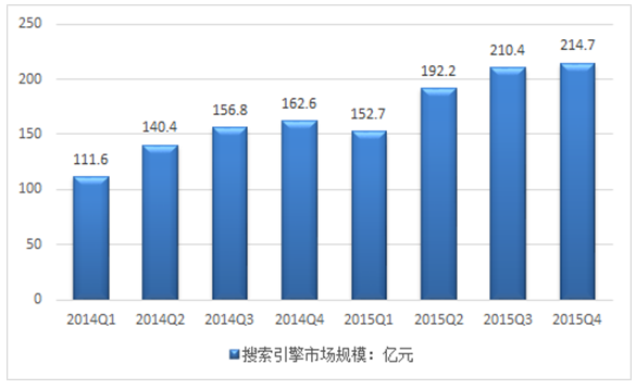 2014-2015年搜索引擎各季度市場規模走勢圖