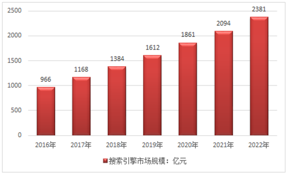 2016-2022年我國搜索引擎市場規模預測