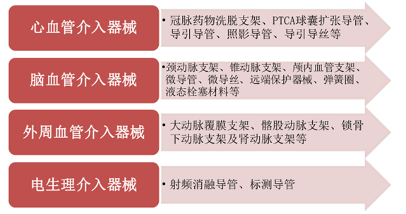 1)心血管介入器械:冠脈藥物洗脫支架、PTCA 球囊擴張導管、導引導管、照影導管、導引導絲等;
