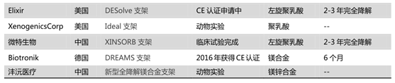 2)可降解鎂合金支架:特殊構造的鎂合金在體內分解為鎂離子,被人體體液完全降解,降解期 4 個月左右;