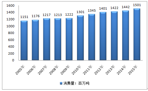 2005年亞太地區石油消費量1150.60百萬噸,2010年亞太地區石油消費量1300.92百萬噸,2015年亞太地區石油消費量1501.45百萬噸。