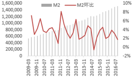 與此同時,二三線城市去庫存仍然是主要任務。總而言之,近期一二三線城市房 地產市場價格走勢分化、政策分化、預期分化,分化成為房地產市場的關鍵詞。2009 年至今 M2 增速