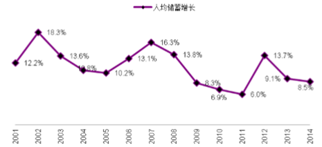 中國人均儲蓄率增長率