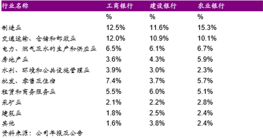三大行行業貸款比例比較