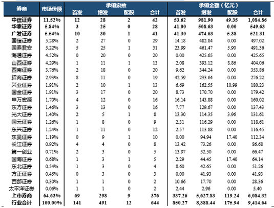 2016 年 前三季度,股權融資規模合計 1.36 萬億元(包含 IPO、增發、配股),同 比增長 41.5%(增速較上半年的 17.3%顯著提升,主要系去年三季度 IPO 中止造成低基數),其中,增發規模大幅增長 54.7%至 1.25 萬億元(較上 半年進一步加速增長),帶動投行業務收入大增。上市券商中,中信股權 融資承銷大幅領先,合計承銷金額 1085 億元,市場份額高達 11.5%,華 泰、廣發市場份額分別達到 5.8%、5.5%。 此外,自 2015 年末 IPO 重啟以來,隨著市場逐步恢復平穩,二季度 以來新股發行逐漸提速,且近期監管層對并購重組的監管趨嚴,預計后 續 IPO 有望輪動成為投行業務增長的主要驅動力。