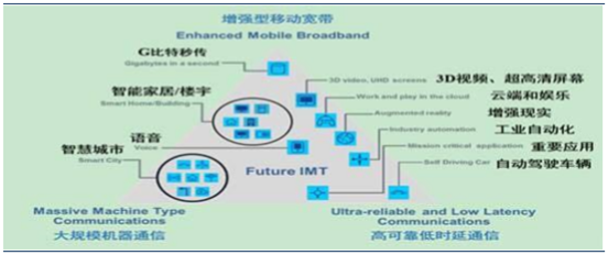 國際電信聯盟 ITU 在 2015 年 6 月召開的 ITU-RWP5D 第 22 次會議上明確了 5G 的主要應用場景,ITU 定義了三個 主要應用場景:移動寬帶、大規模機器通信、高可靠低延時通信