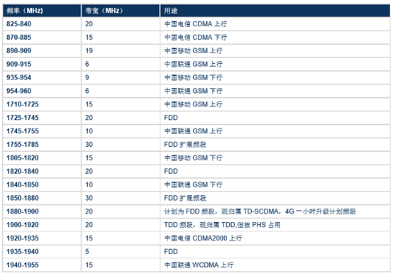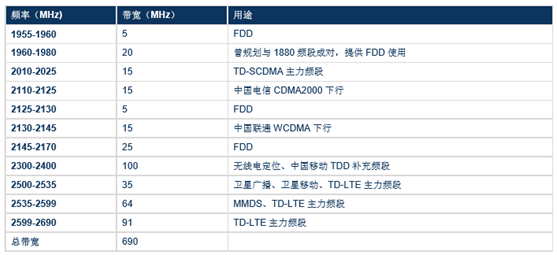 我國通信頻譜分配情況