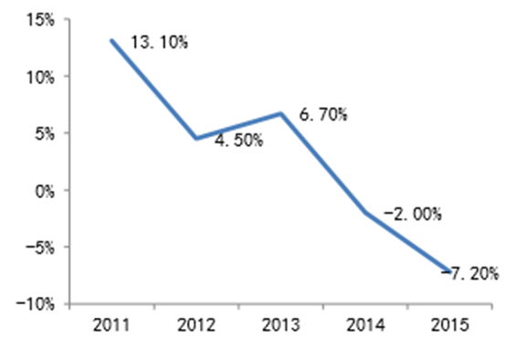 受益于汽車保有量以及智能手機的普及,車載以及手機收音系統廣播的移動收聽市場 持續增長,但從廣告投放收入來看, 2015 年前三季度廣播媒體廣告花費的比例同比下降 0.7%,在廣告主營銷投入持續走低的情況,廣播媒體廣告收入難以擴大。