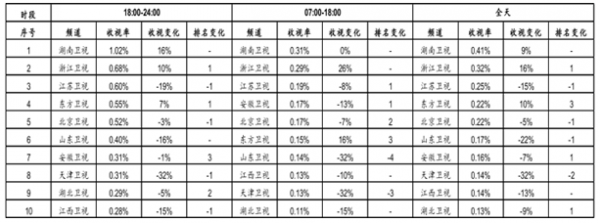 2015年各時間段電視媒體收視率前十名