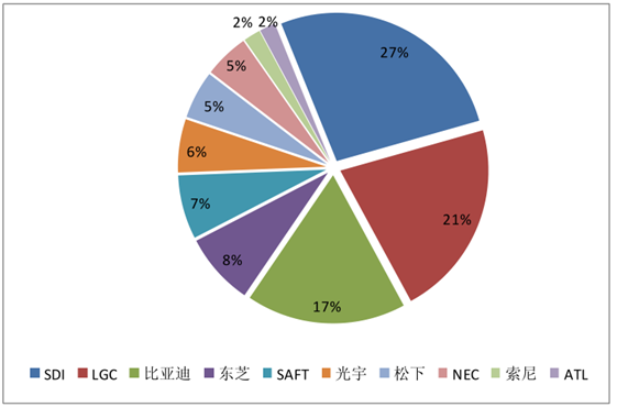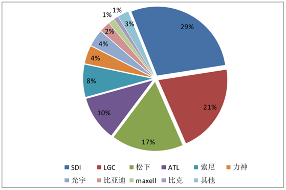 3C 消費電池市場,韓國品牌三星旗下 SDI、LG 旗下 LGC 及日本品牌松下占據全球超過一半的市場份額,國內品牌力神占據全球 4.2%市場,光宇、比亞迪、比克三家國內電池企業同樣擁有一定市場份額。