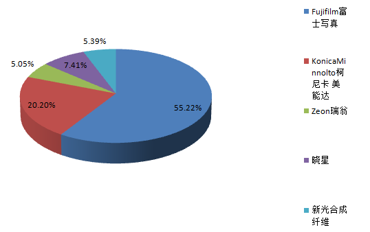 TAC 薄膜生產技術要求嚴格,進入壁壘高,世界范圍內產能相對集中,據統計,日本 Fujifilm(富士寫真)和 Konica Minolta(柯尼卡美能達)的TAC 產能分別約占全球產能的約 55%和 20%。而國內市場更是 70%-80%被日本和韓國企業壟斷。