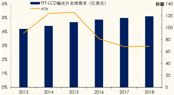 預計 2018 年 TFT-LCD 偏光片全球市場容量 119 億美元