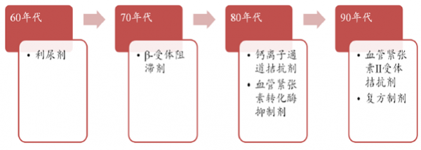 高血壓是一種慢性病,患者需要長(zhǎng)期用藥控制血壓。高血壓藥物發(fā)展經(jīng)歷了幾個(gè)階段,20世紀(jì)60年代推出的利尿劑,70年代出現(xiàn)的β-受體阻滯劑,80年代推出鈣離子通道拮抗劑和血管緊張素轉(zhuǎn)化酶抑制劑以及隨后90年代開(kāi)發(fā)出的更具有特異性的血管緊張素II受體拮抗劑。之后,美國(guó)FDA批準(zhǔn)了多個(gè)單方和復(fù)方制劑上市,成為高血壓治療的一線(xiàn)藥物。