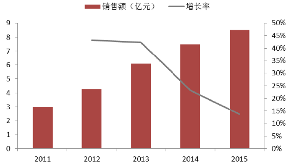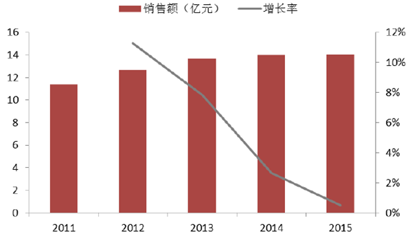 2011-2015年復(fù)方降壓藥重點(diǎn)醫(yī)院銷(xiāo)售情況
