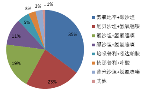 2015年復(fù)方降壓藥各品種銷(xiāo)售占比