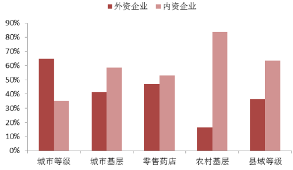 內(nèi)外企業(yè)在不同渠道降壓藥銷(xiāo)售占比