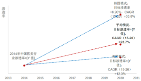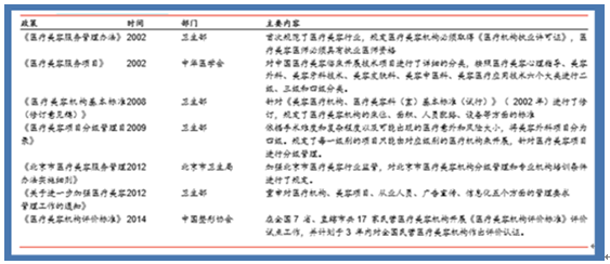 隨著“日韓”醫美整形文化的進入, 眾多明星整形也產生了積極的示范效應,居民逐步轉變對醫美的觀念,對醫美的接受度慢 慢提升,近幾年已經逐步進入大眾視野,越來越多的人開始通過整形美容改善自己的形象, 在入學、求職、戀愛、社交等生活中各個場景收獲自信(根據統計,2009-2014 年中國赴 韓整形人數 CAGR 為 134.42%)。故我們判斷居民對醫美消費意識的持續提升,將成為催生醫療美容需求釋放的重要動因。