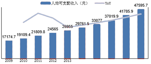 2009-2018 年城鎮居民人均可支配收入將持續增長